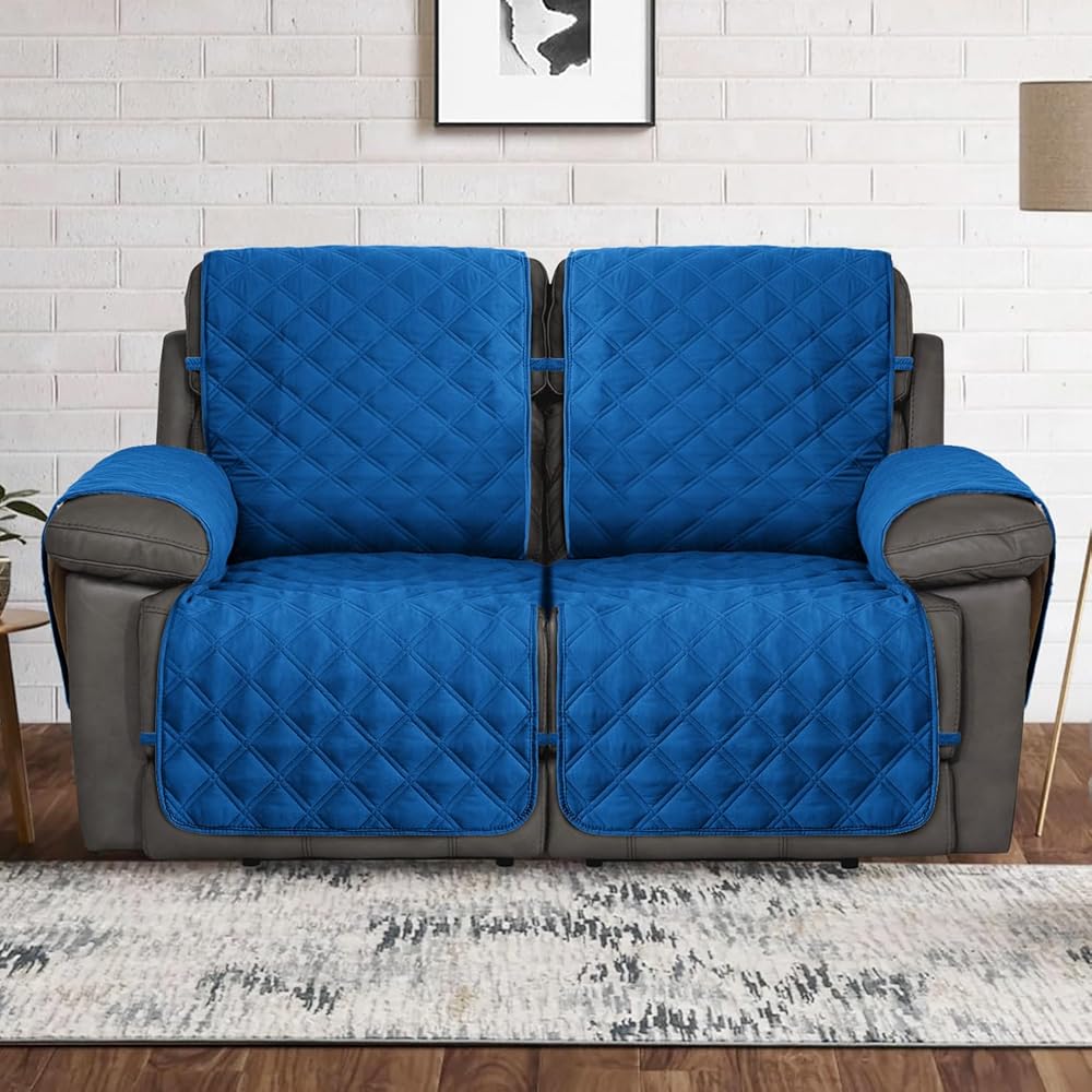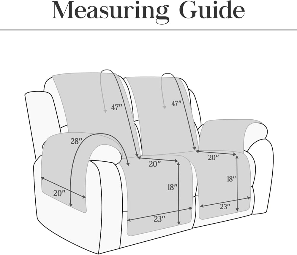 Easy to Install: Drape your double recliner furniture with the cover, inserted the backing long tuck inserted into the gap of the sofa and attach the tuck elastic straps at each side into the gap between the back and arm to prevent cover sliding.