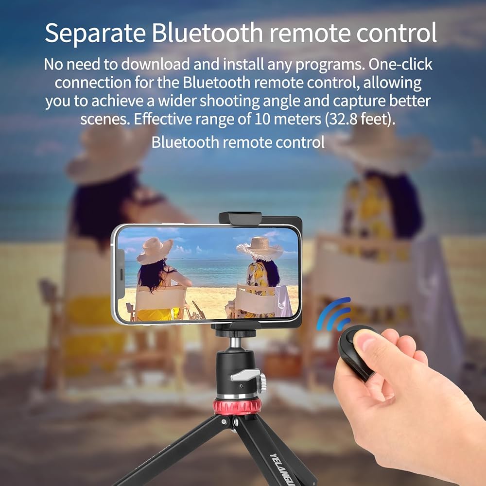 Effortless Remote Shooting: Equipped with a detachable Bluetooth remote shutter, you can achieve long-distance shooting without the need to download any apps. Simply connect with a single button press. Whether it's selfies or group photos, you can easily capture them with an effective distance of up to 10 meters(32.8 feet). Moreover, the remote shutter also features volume key functions for taking photos or recording videos, making it convenient to use.