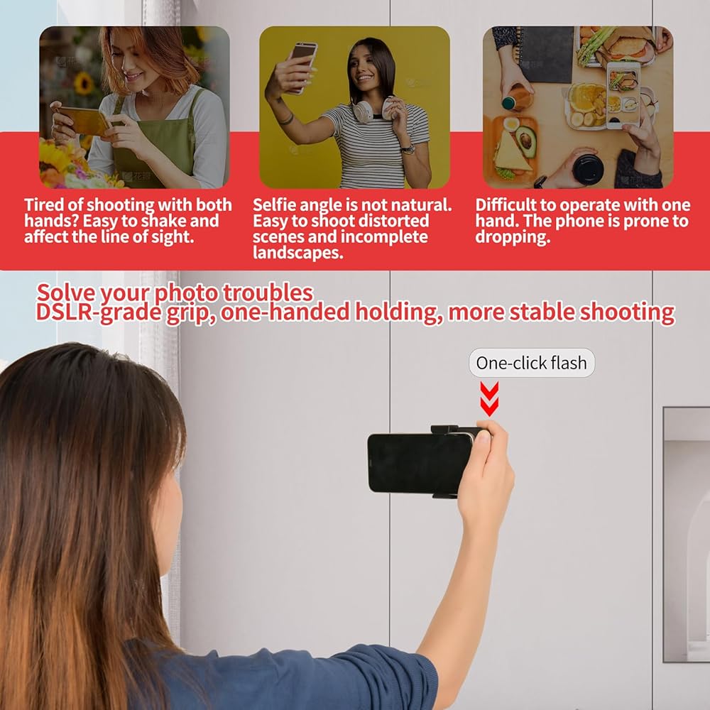 YELANGU Smartphone Camera Grip: SmartShutter Handle with Detachable Wireless Bluetooth Remote Control - Perfect for iPhone, Samsung, Google, OnePlus - Advanced and Video/Photo Shooting Capabilit