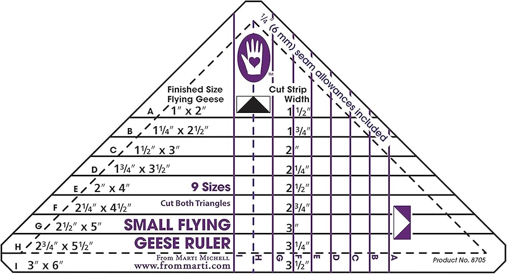 Use this ruler to create beautiful patchwork combinations. This 7x10. 75 inch package contains one ruler and instructions. Made in USA.