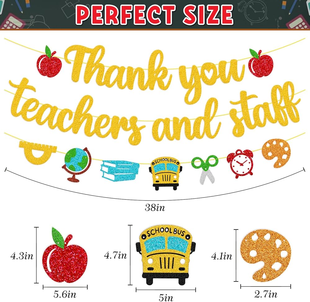 ✏️⏰📚No DIY Required📖📐✂️Having been pre-assembled, the Thank You Teachers and Staff Banner can be used directly to decorate any place where you want. Your teacher appreciation party will be full of warm and grateful vibe, and then you will find a special way to show exceptional educators your gratitude and tell them how much their commitment and dedication to our children is so appreciated during the Teacher Appreciation Week.