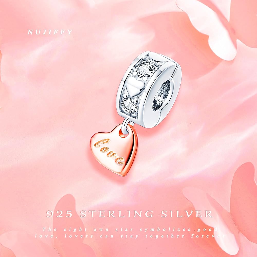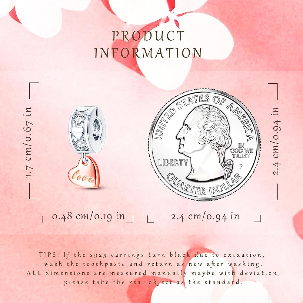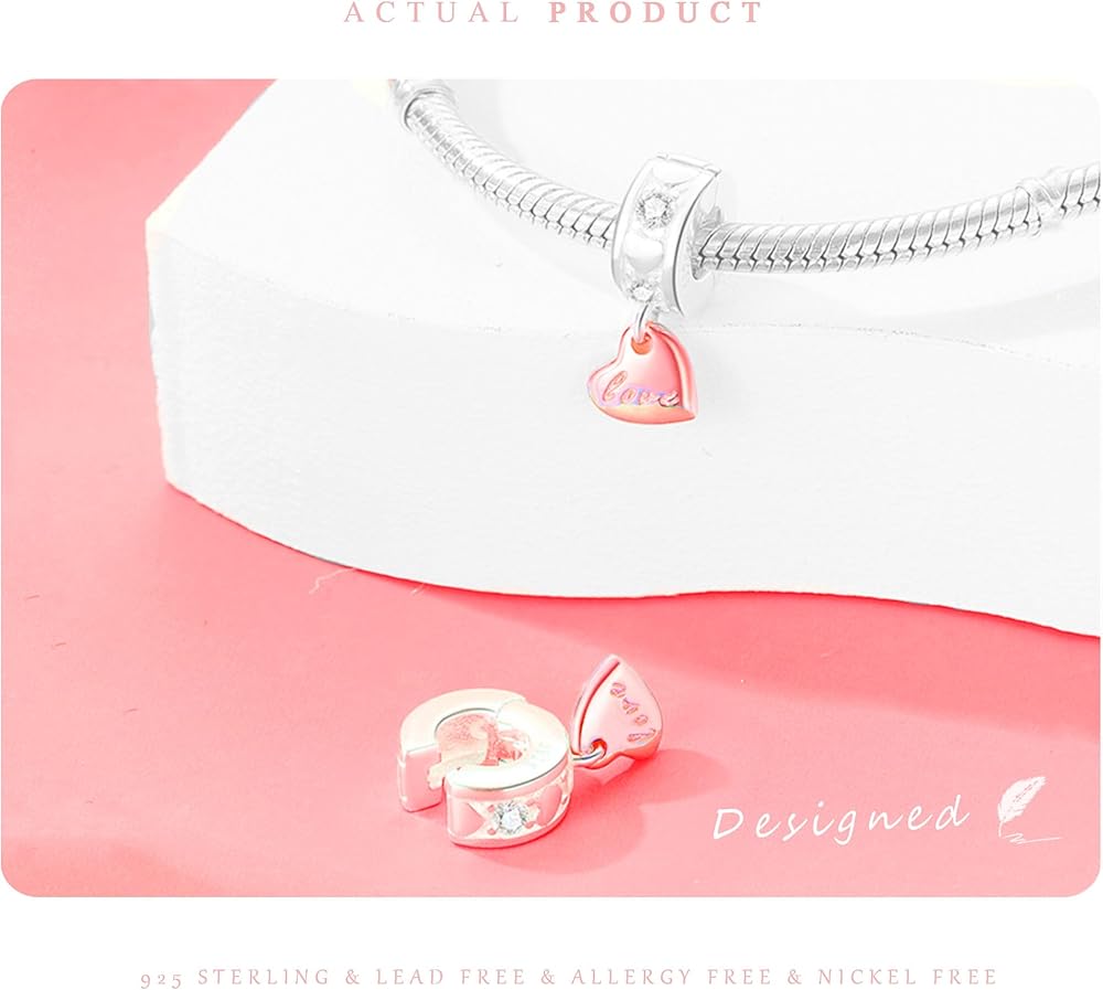 925 Sterling Silver Charms Beads for Bracelets & Necklaces, Pink Heart Charm Angel Cross Birthday Gifts Pendant Jewelry for Women Men Teens
