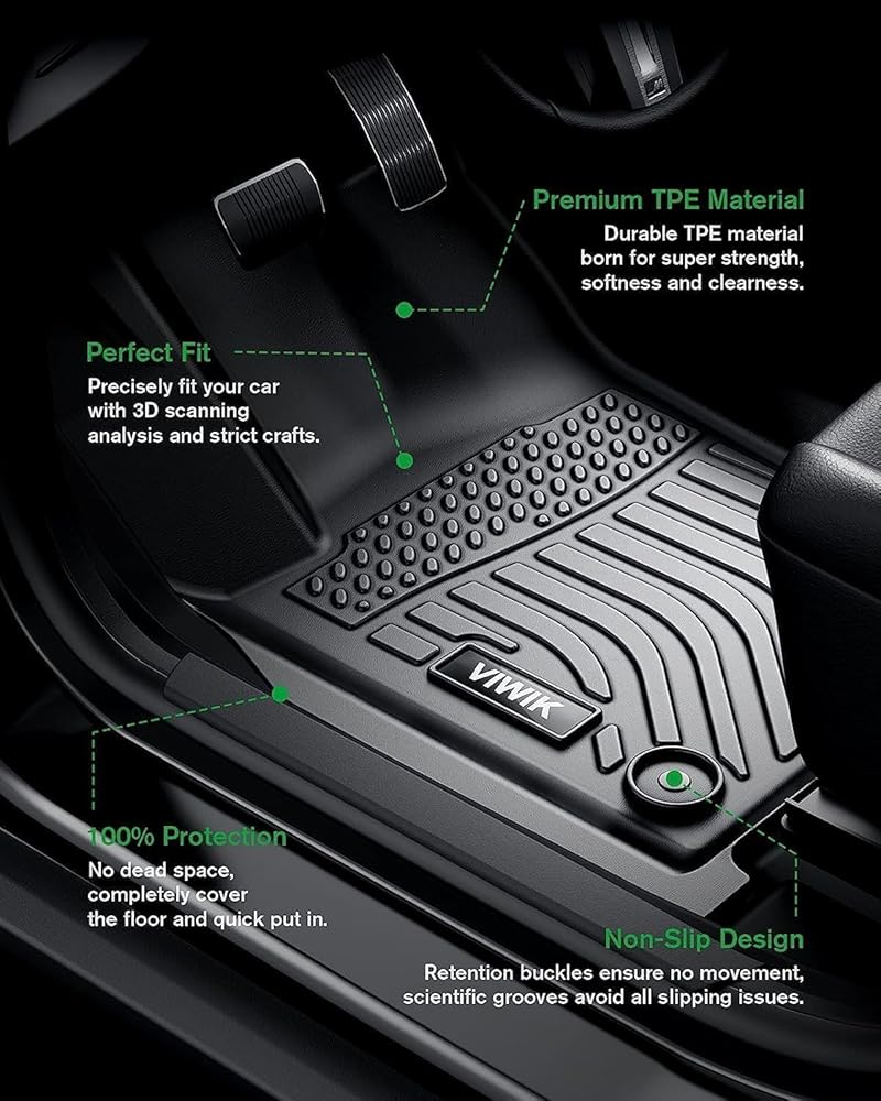 🚘Tough & Durable: VIWIK floor liners are made with environment-friendly TPE material. The mats are not contain any harmful PVC material. Not only ensure that 99% safe use even in extremely hot weather but also remains flexible in extreme cold weather. Provide you and your families a healthy and comfortable interior car environment.