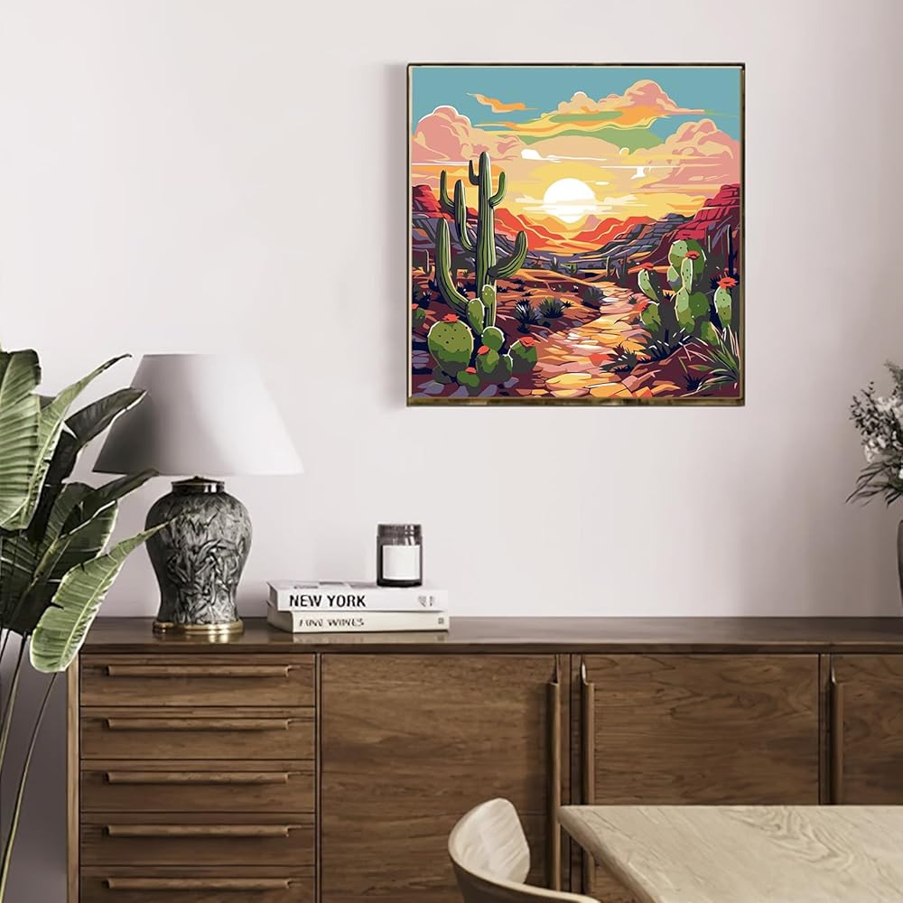 MAXBYE Paint by Numbers Kits for Adults Beginners with Wooden Frame, Easy Canvas Paint by Numbers Cacti Succulent, DIY Oil Painting Art Kit for Home Wall Decoration 12X12 inch