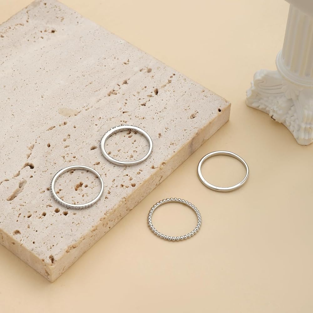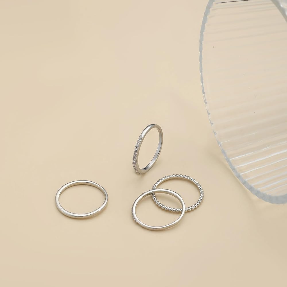 ♚【4 PC Silver Rings】Each set of rings contains unique diamond elements, which are very shiny and fashion-designed. Besides, these highly polished makes smooth surface, blingy rings, comfortable to wear. These stacking rings can be worn separately or stacked.