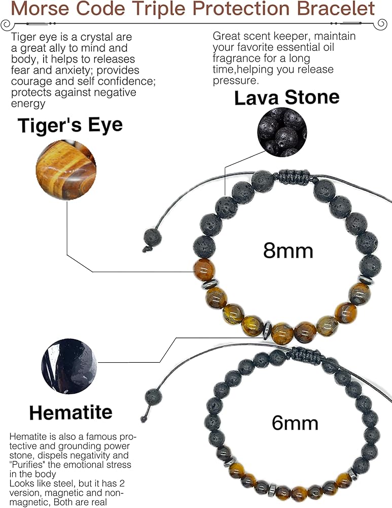 AFTER SERVICE:Our Morse Code Triple Protection Bracelet has undergone rigorous quality inspection and is committed to providing every customer with a product of the highest standard. Free exchange or full refund within 90 days. If you encounter any problems while using the product, please feel free to contact us, we will help solve the problem within 24 hours!