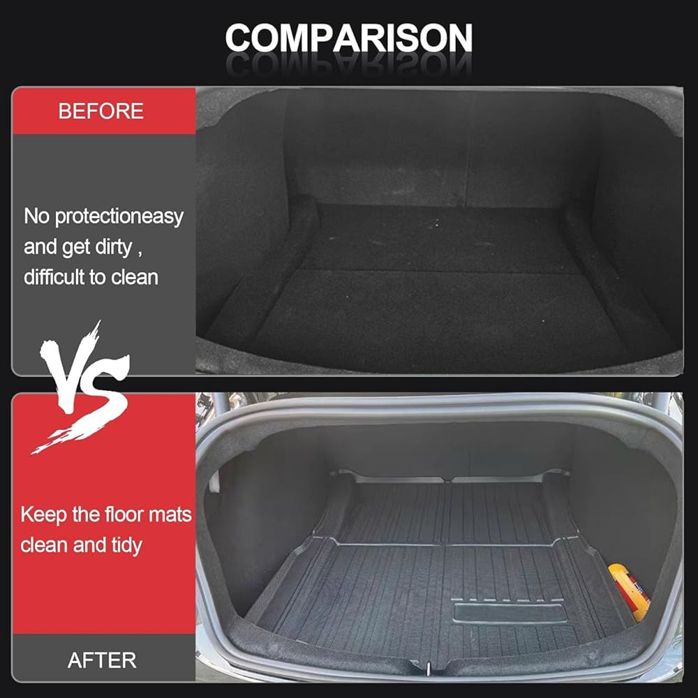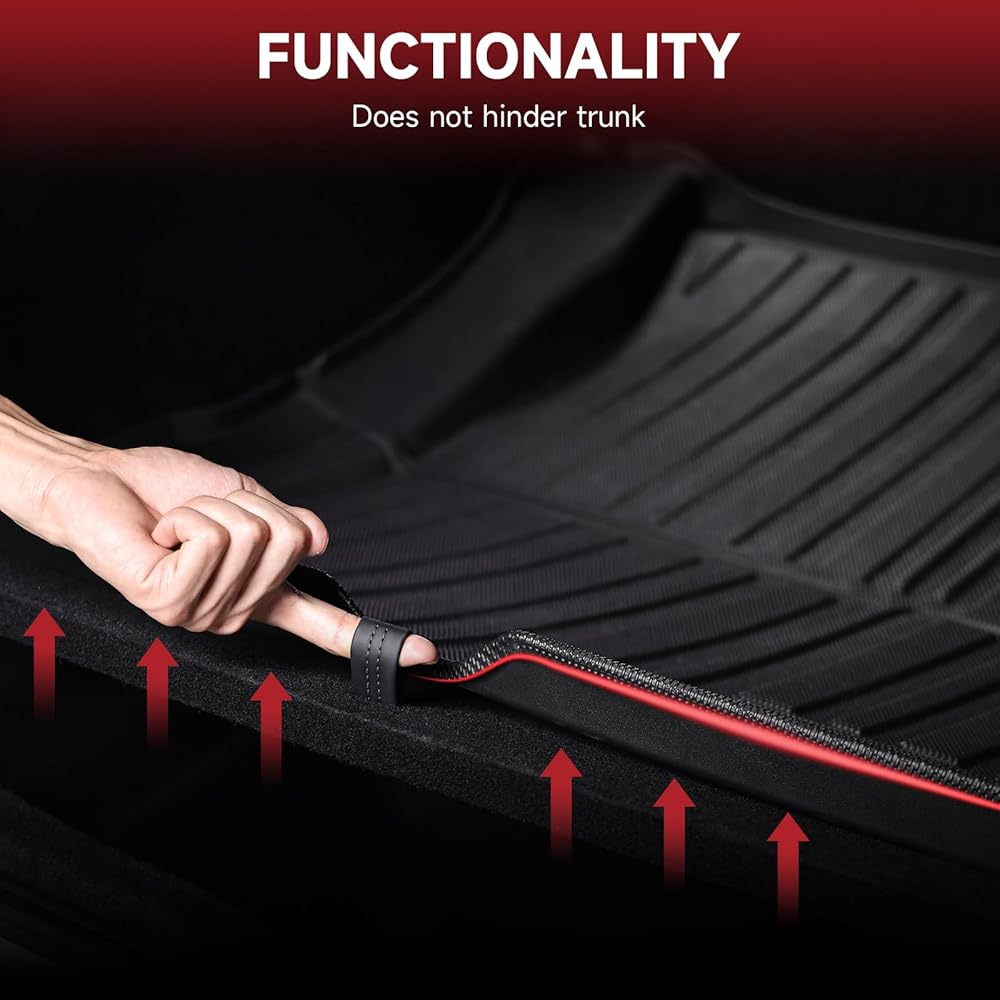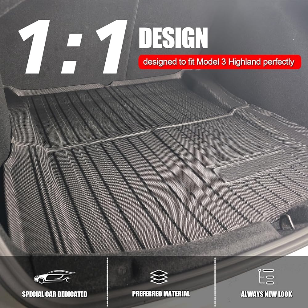 Custom Fit: The floor mats are crafted with 3D laser scanning technology to ensure the perfect custom fit for Tesla Model 3 Highland. Each set of floor liners includes 1st & 2nd Rows Floor Liner & Front Rear Cargo Liner & Trunk Mats - A total of 6 Mats with full coverage.