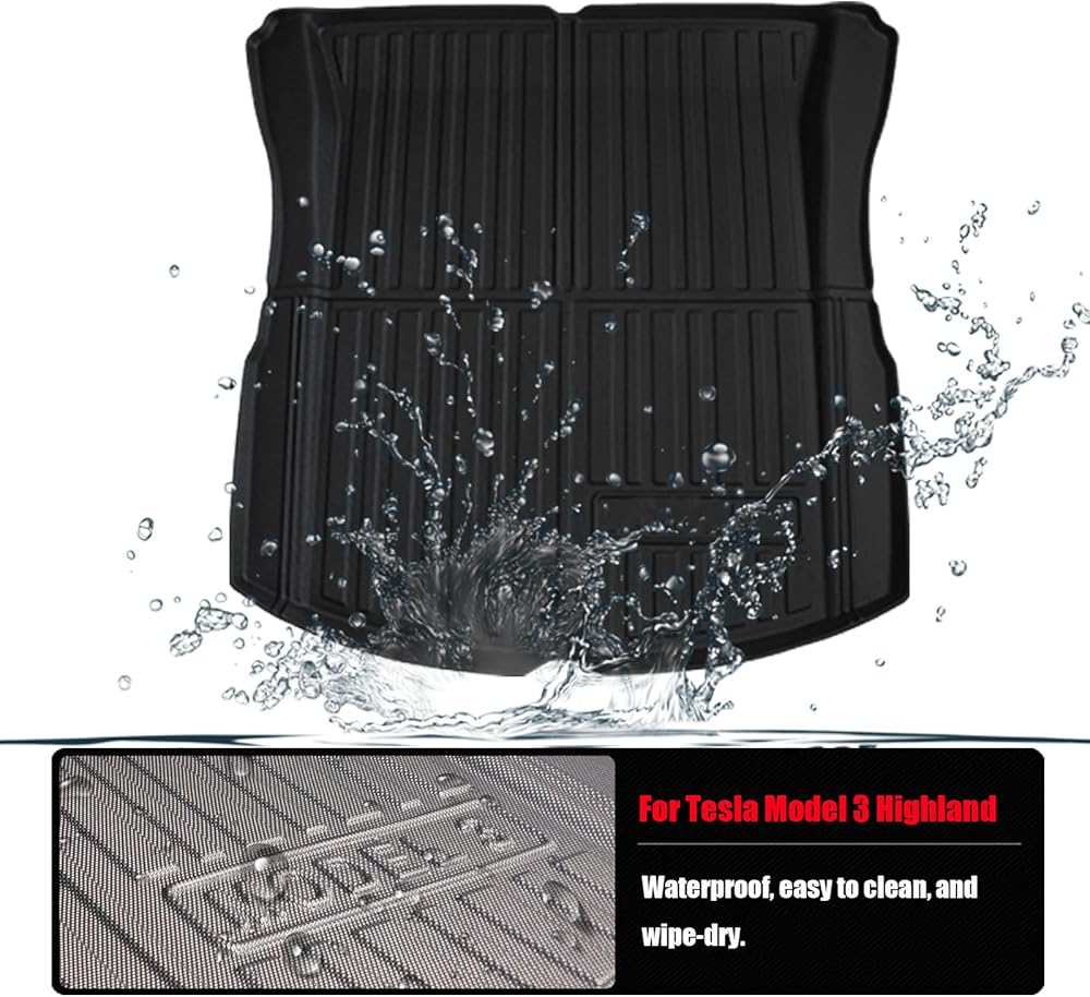KIKIMO for Tesla Model 3 Highland Trunk Mat Cargo Mat 2025 2024 for Tesla Model 3 Accessories, TPE All-Weather Cargo Liner Heavy Duty Trunk Liner Interior Accessories