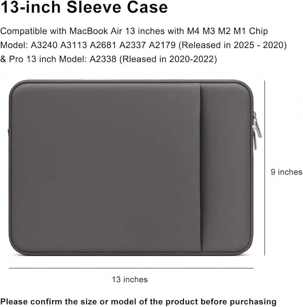 【Dimensions & Compatible model】13(Length) x 9(Width) x 0.8(Thickness) inches Compatible with 2024 - 2020 MacBook Air/Pro 13 inch with M3 M2 M1 Chip A3113 A2681 A2338 A2337 & Surface Pro 10/9/8/X; For other models, please check the dimension of your laptop to confirm if the sleeve case fits or not before ordering