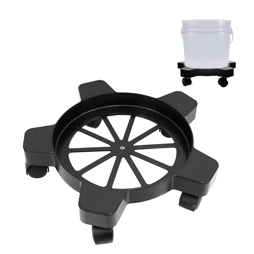 - 【Heavy duty】:5 gallon bucket dolly designed to haul up to a 5-gallon drum. Each drum dolly with wheels heavy duty is capable of moving 75 lbs.