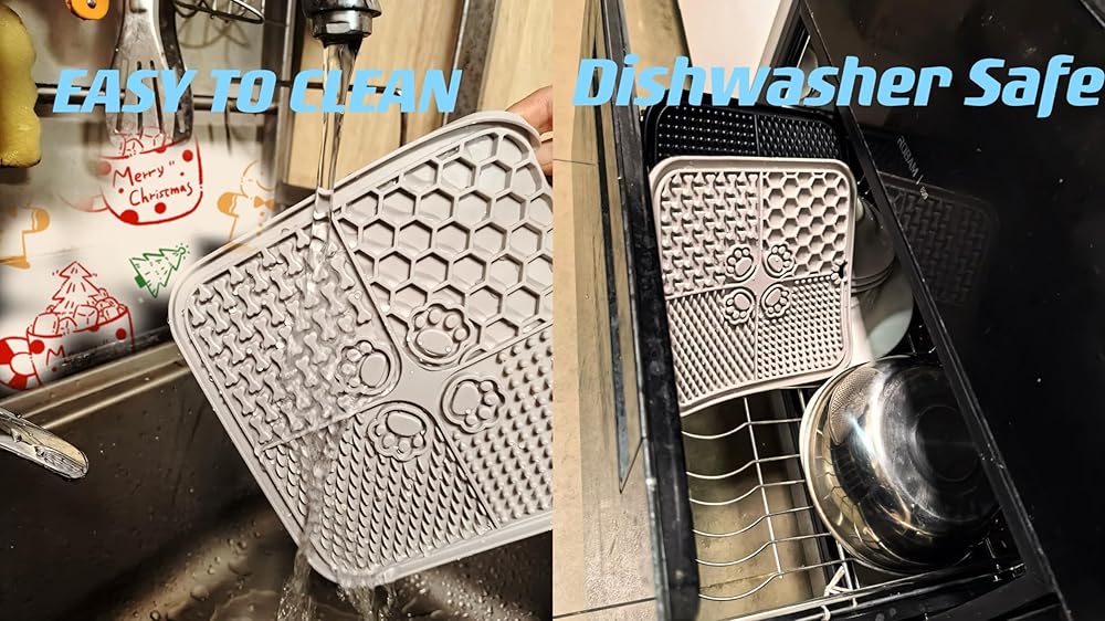 🐶🐱【Food-grade & Dishwasher safe slow feeding mat】Our Slow Feeder Licking Mat is made from 100% BPA Free, Non-Toxic, Food Grade silicone. This pet mat is safe for the health of your beloved friend. It's also freezer safe, easy to clean, and dishwasher safe.
