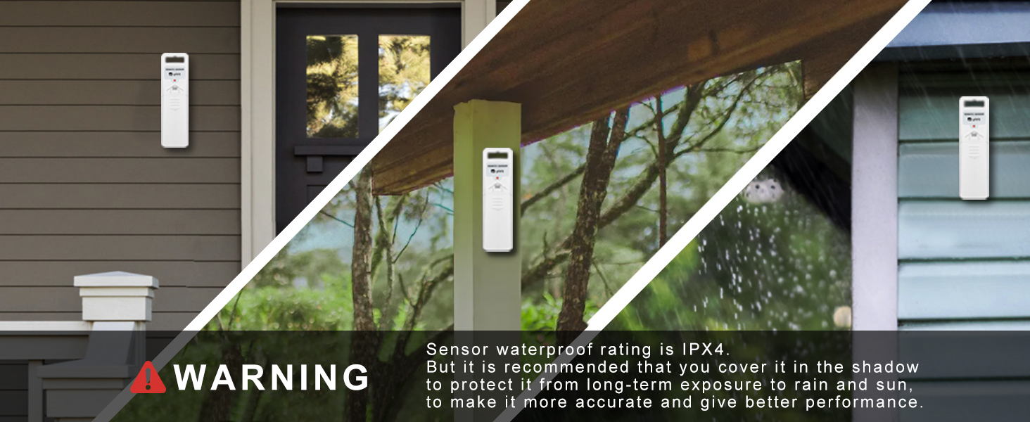Sensor waterproof rating is IPX4. But it is recommended that you cover it in the shadow to protect it from long-term exposure to rain and sun, to make it more accurate and give better performance.