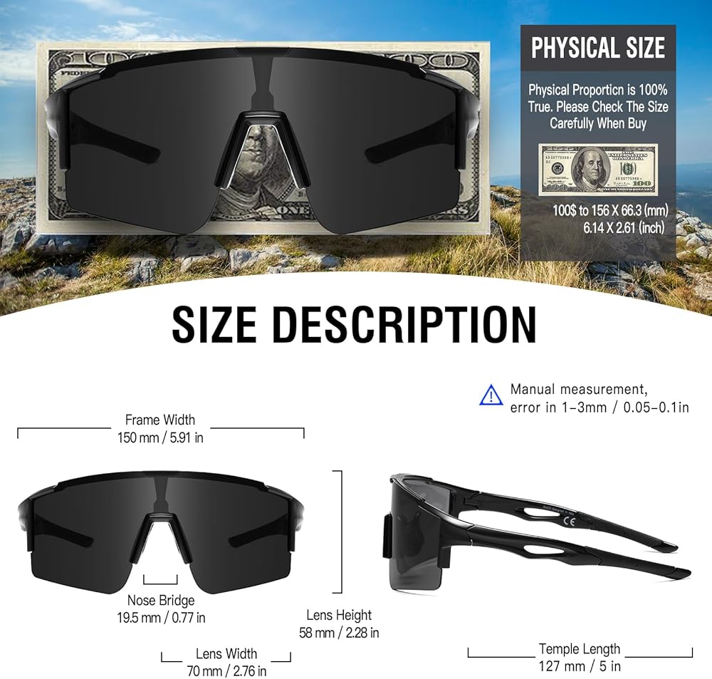 【Product Dimension】- Suitable for matching various face shapes. More information: Frame Width:150mm|5.91in; Lens Width: 70mm|2.76in; Lens Height: 58mm|2.28in; Nose Width:19.5mm|0.77 in; Temple Length:127mm|5in.