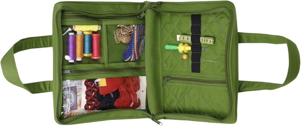 This innovative bag was designed for smaller projects – EPP, Cross Stitch, Embroidery, Quilting, Needlework etc. Size Open: 23.5" x 12.25 in. Closed: 8.6" x 12" x 1"