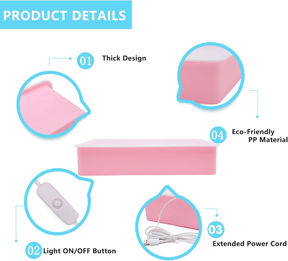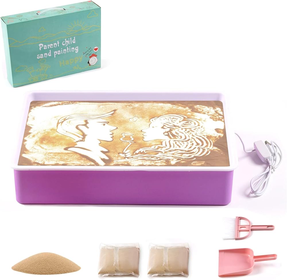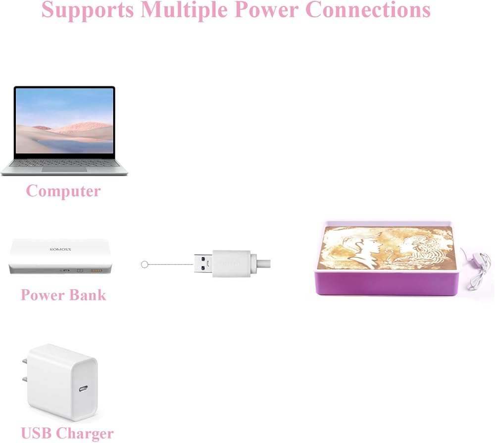 Quality and Safety: Made from safe and environmentally friendly PP material, the sand art light table ensures child safety. Operates on a safe 5V voltage with no risk of electric shock. It emits soft, shadow-free light, protecting children's eyes during use.