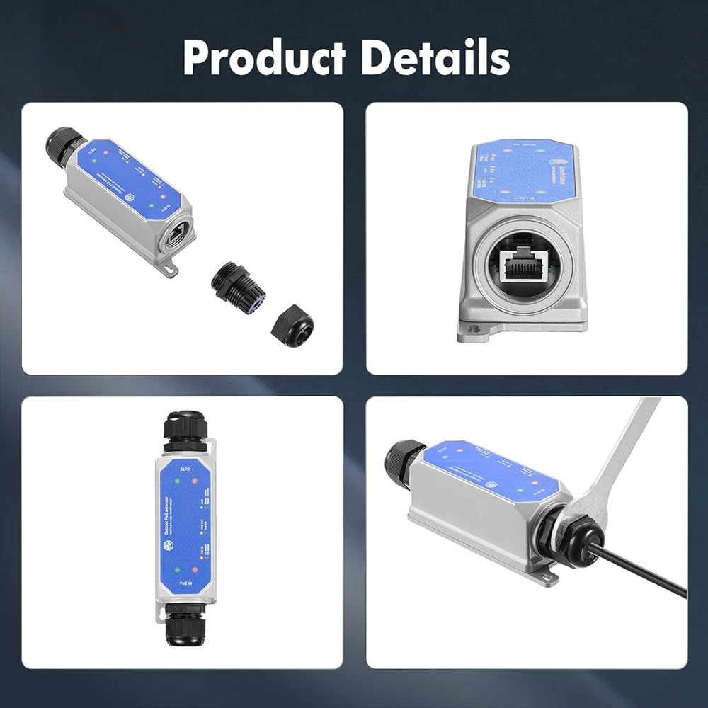 【IP67 Outdoor weatherproof】 Industrial grade ABS polymer material shell, cable interface all protected in the shell, with waterproof cap, with better waterproof, dustproof, snowproof effect, more suitable for outdoor use; also suitable for complex indoor environment, such as warehouses, computer rooms, garages, attics, etc. **Network cable through the waterproof cap and then make RJ45 connector**