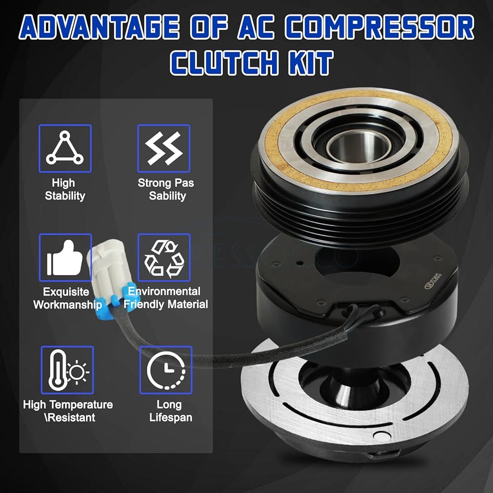 🚗Wide Application: AC Compressor Clutch Kit Compatible with 2000-2013 Chevy Silverado 1500 2500 3500 8CYL 4.8L 5.3L 5.7L 6.0L 6.2L 8.1L. [Note]: Please be sure to confirm the Year/Make/Model applicable information properly before ordering.