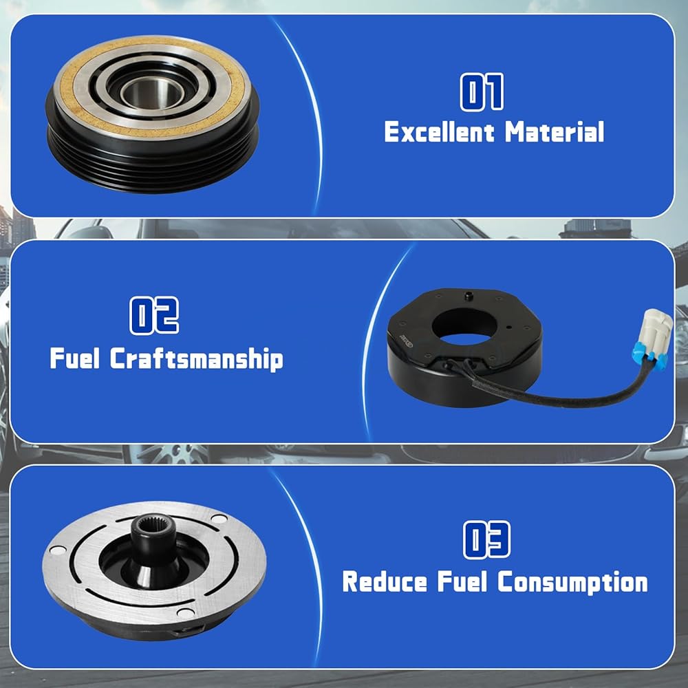 🚗Durable Material: This A/C compressor clutch kit is made of high-quality alloy iron material, which are not easy to damage, wear-resistant and corrosion-resistant, high reliability, stable performance, sturdy and durable, long service life.