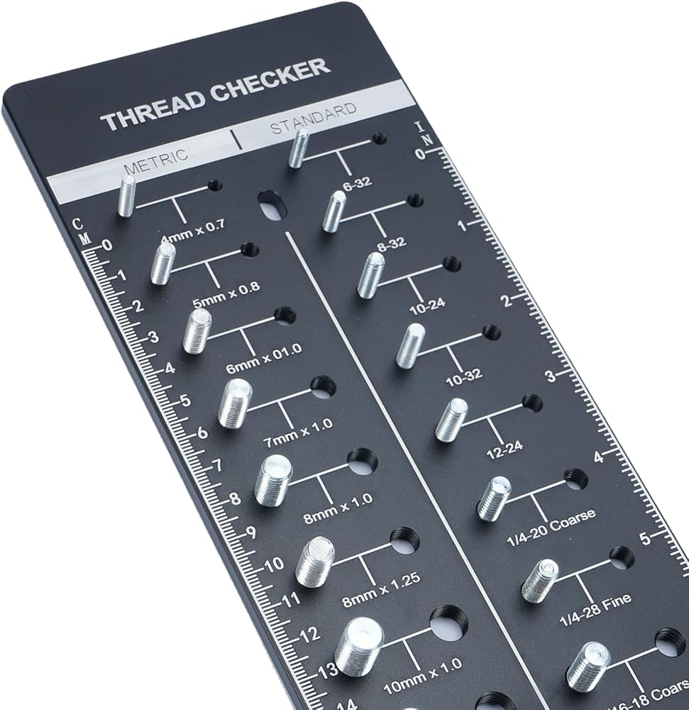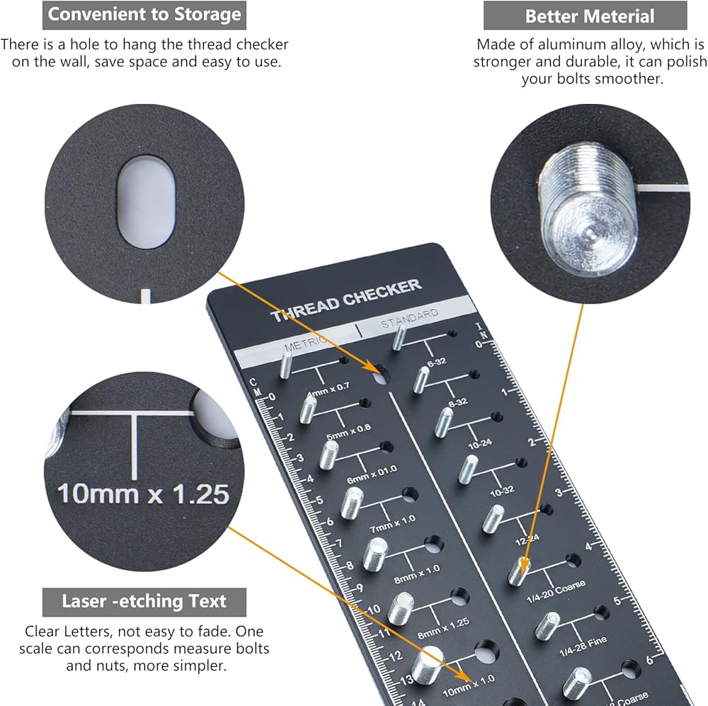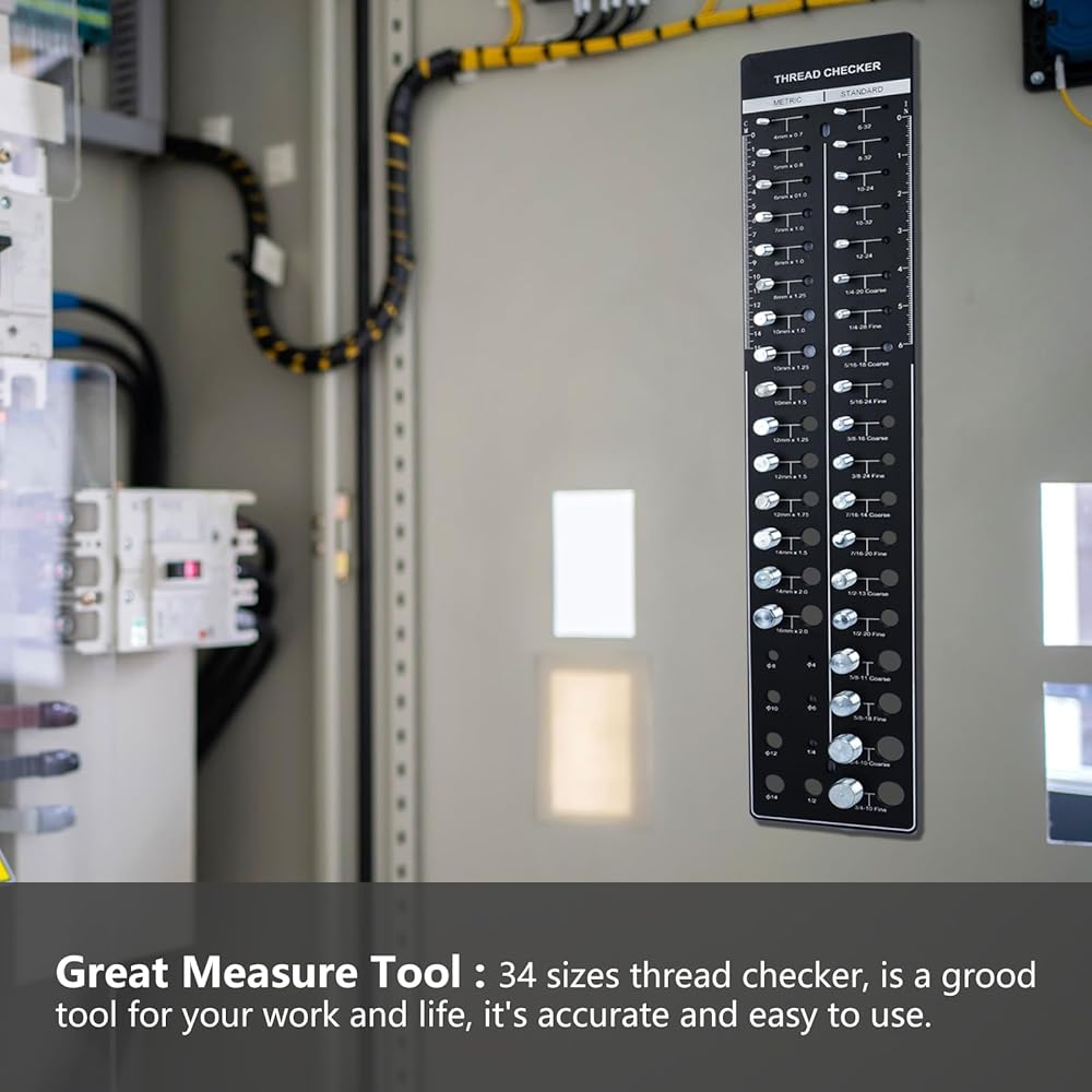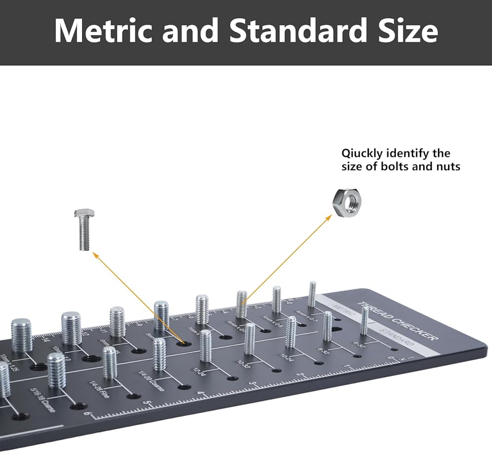 Uses: High-quality thread checker can make sure the specifications and length of bolts, nuts and dills quickly, a perfect tool for your work, life and study. It's durable and sturdy, has a long service, conveninent to use and hang.