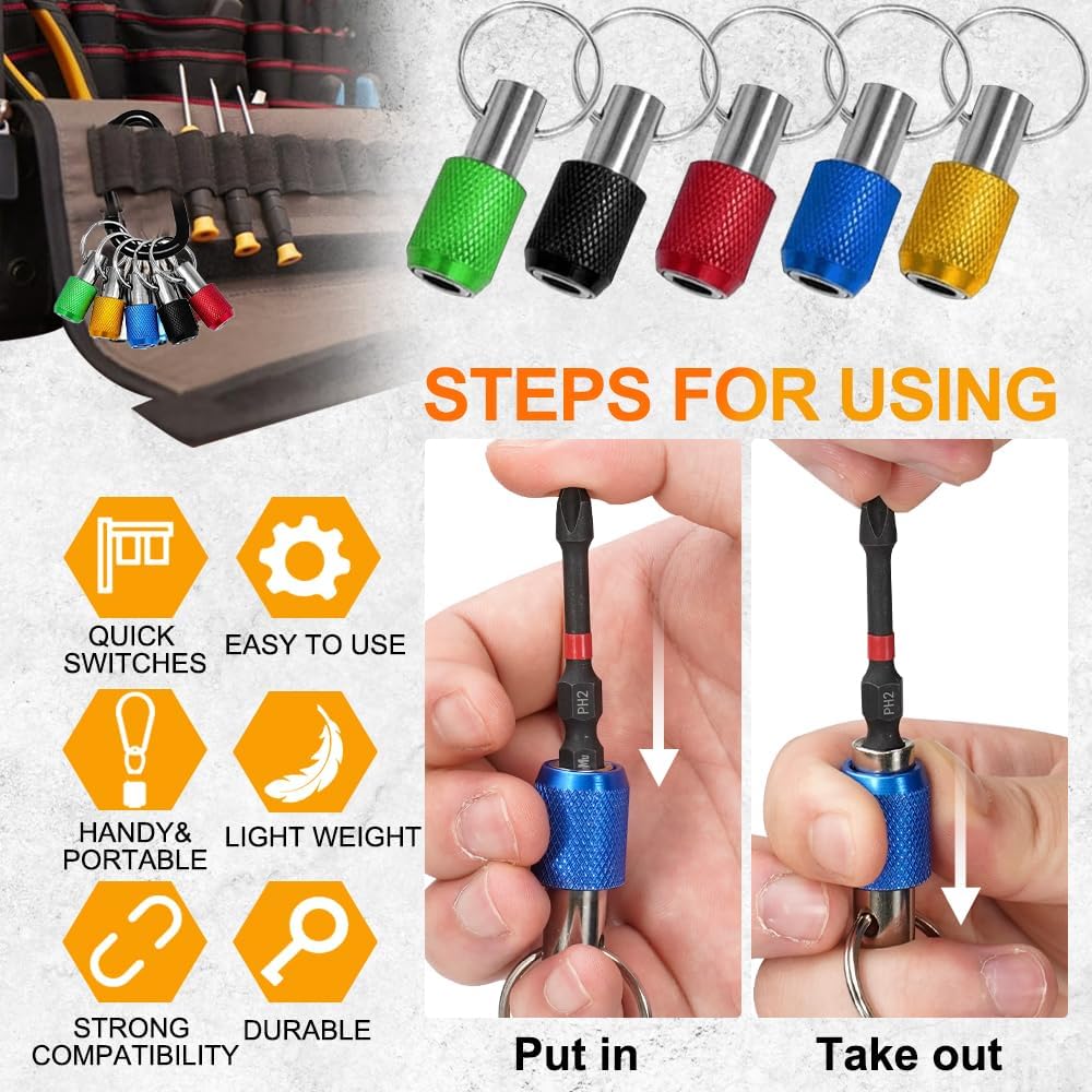 10PCS 1/4 Inch Hex Shank Quick Release Bit Holder Keychain Tool Drill Bit Holder Portable Quick Change Screwdriver Bits Holder Organizer for Electric Screwdrivers and Drill Bit Cool Gadgets for Men