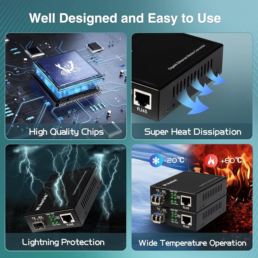 Widely Used: compact size, metal case, cooling holes on both sides, easy to install to various locations that require fiber and ethernet cable conversion, such as home/commercial/industrial, computer room, equipment box, etc.