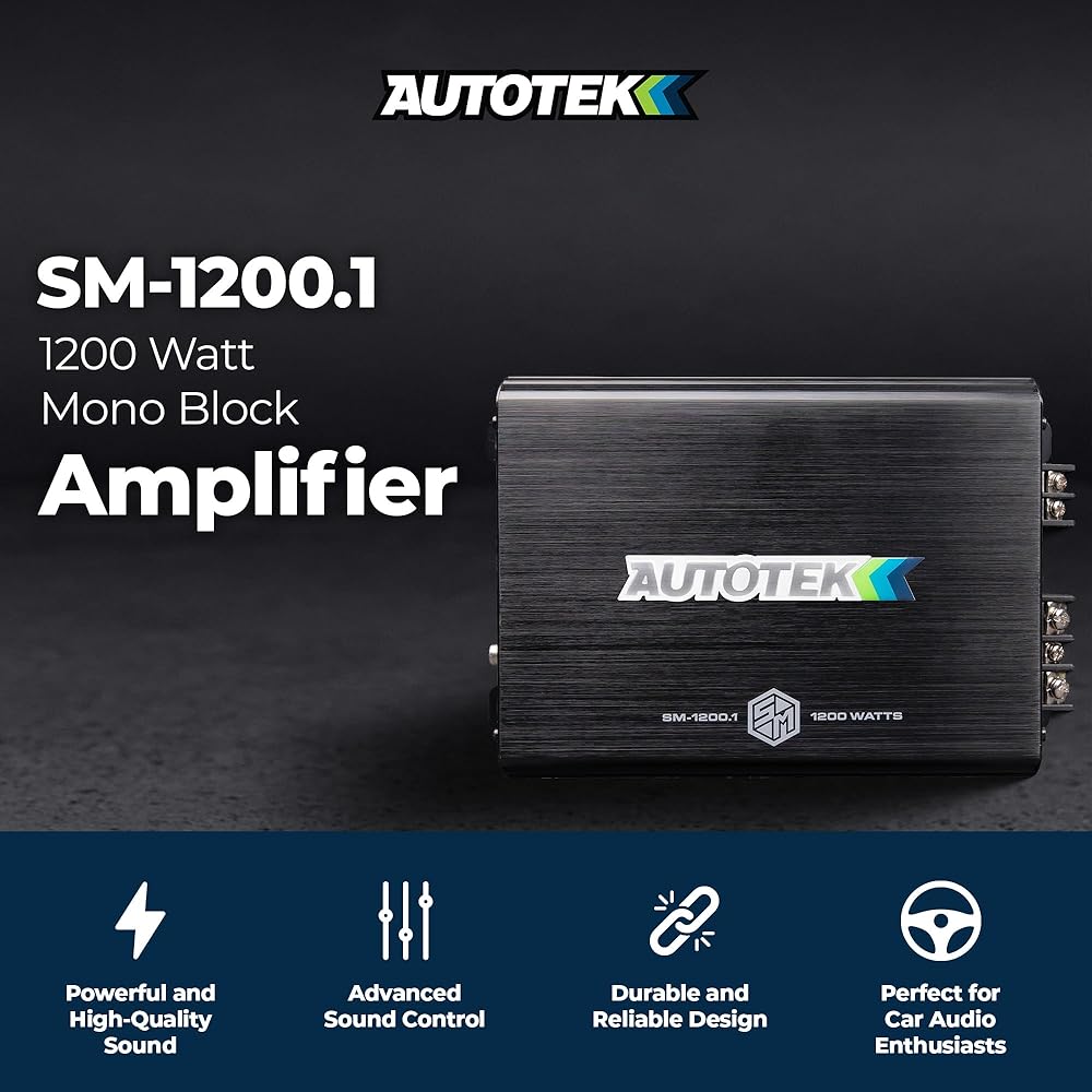 Autotek 1200 Watt 1 Channel Car Audio Amplifier, High Output Class D Mono Bridged 4 Ohm Stable Input, Street Machine, SM-1200.1, Black