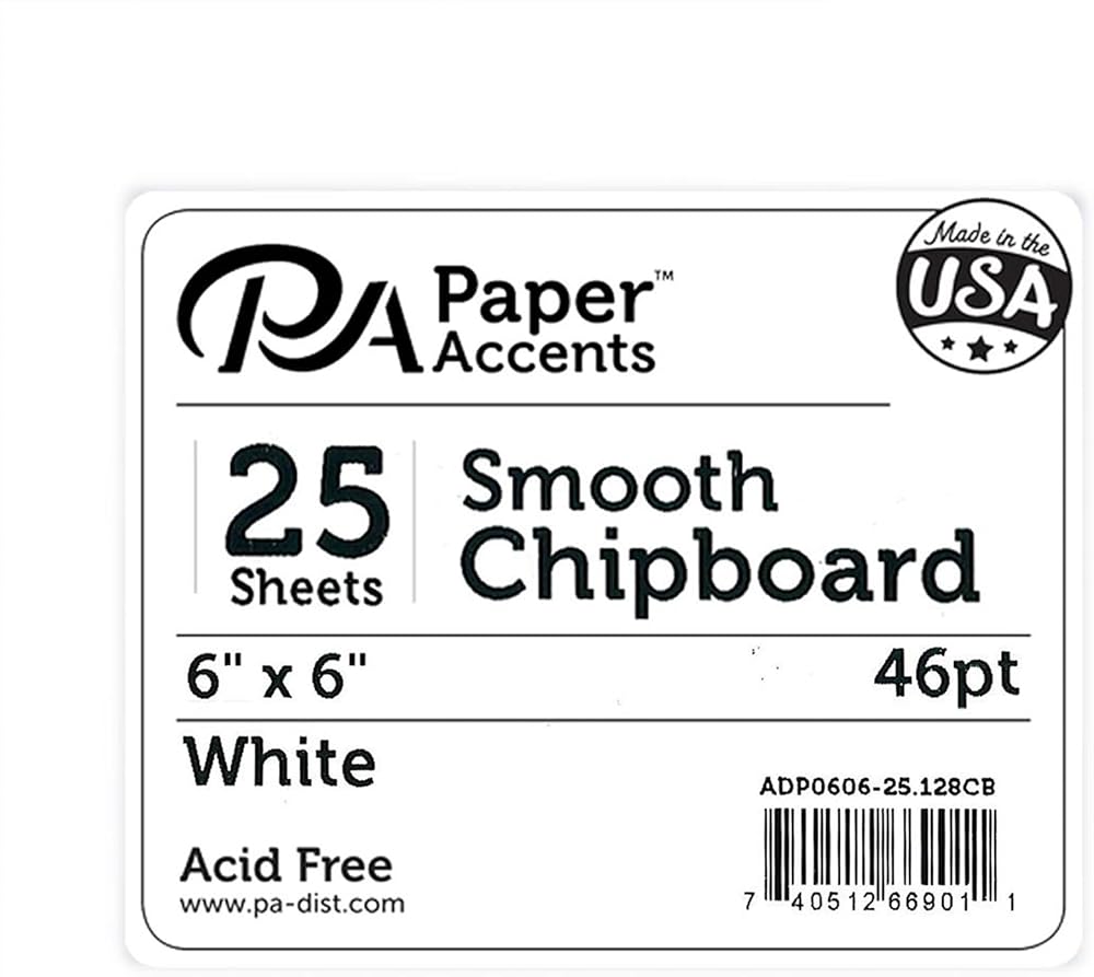 Accent Design Paper Accents Chipboard Squares - 6" x 6" Heavy 46pt White, 25 Pack - Thick Chipboard for Albums, Journals, Die Cutting, Card Making & Craft Projects - Recycled Paper