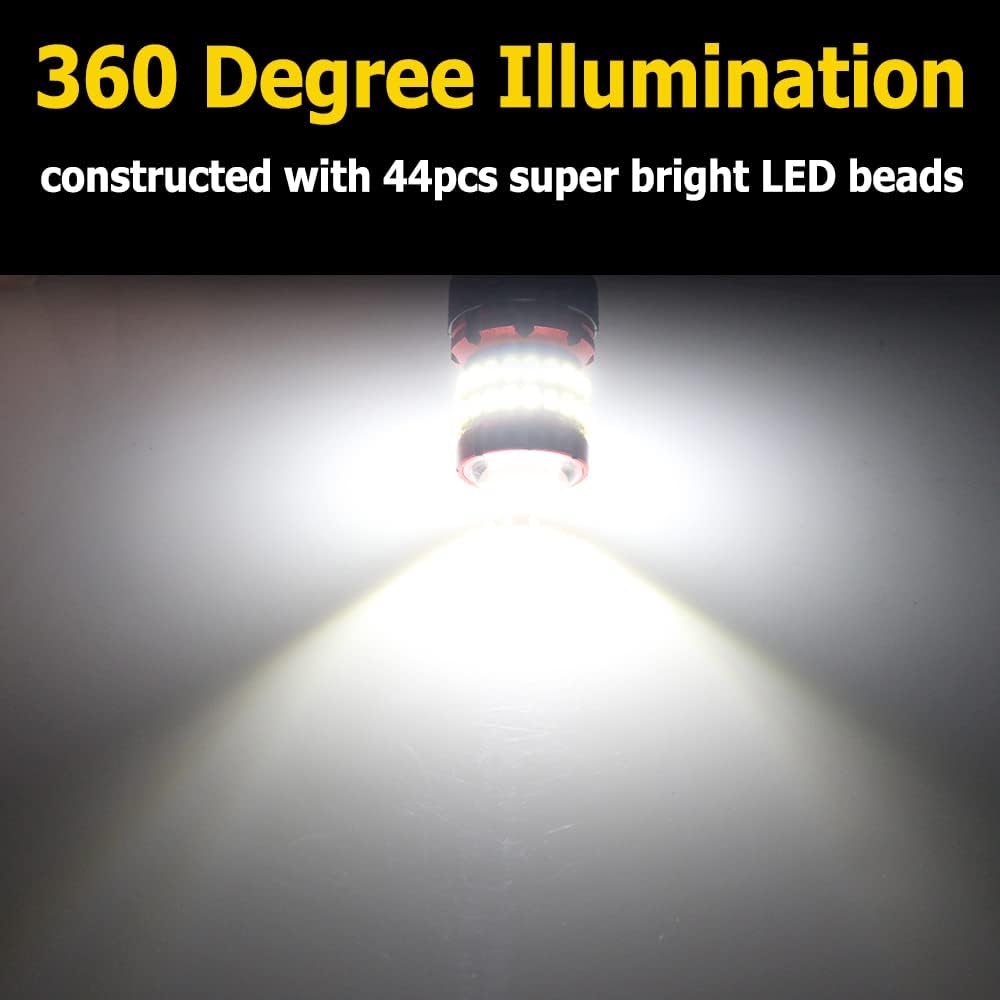 HIGH BRIGHTNESS -- Each bulb has 44pcs high power 3030 LED chips, cool white, 1200LM per bulb, 2400LM per set, 400% brighter than halogen bulbs.