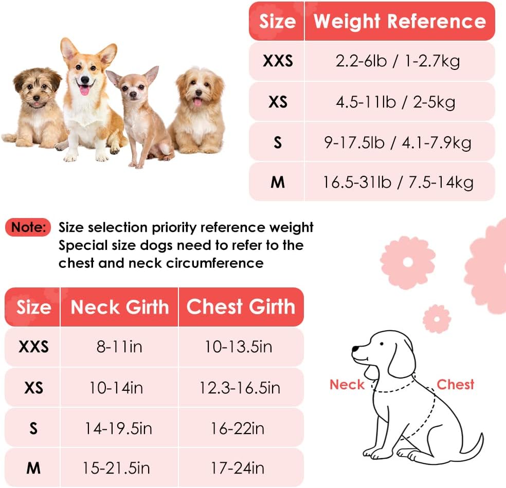 【Customized Harness for Puppy】:The non-pull dog harness weighs only 0.9oz (26g), making it an extremely lightweight option that won't add any extra weight to your dog. With its precise cut, it can perfectly fit your dog's body, ensuring the protection of their bones and muscles from any potential injuries. (There are four sizes to choose from: XXS, XS, S, M. Please consult the size chart to select the appropriate size.)