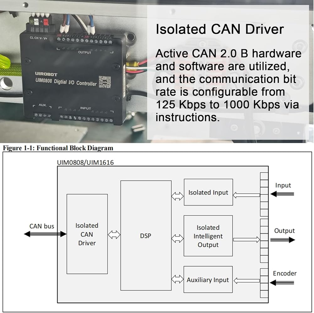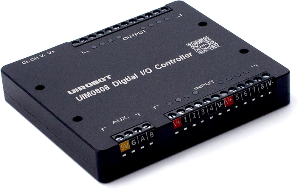 Compact I/O Module,Metal Case,Industrial 3750V Isolation,Low‑Profile Data Acquisition (DAQ),CAN Bus and Encoder Interfaces,8 in / 8 Out / 1 Auxiliary Input, Provide SDK & Sample Code (UIM0808)