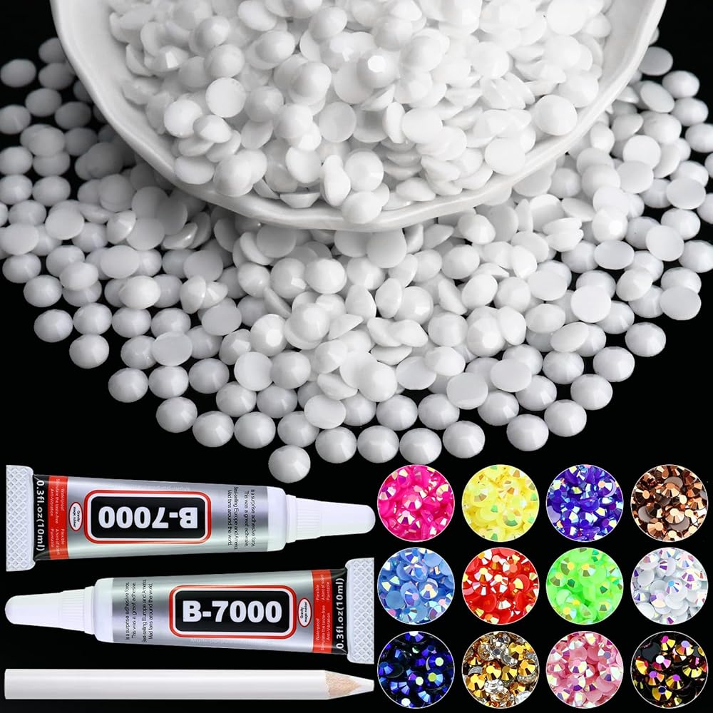 8000PCS 2mm Resin Rhinestones for Crafting, Solid White Flatback Rhinestones for Clothes Shoes Tumblers Nail Art, Wholesale Bedazzling Jelly Gemstones with B7000 Clear Glue