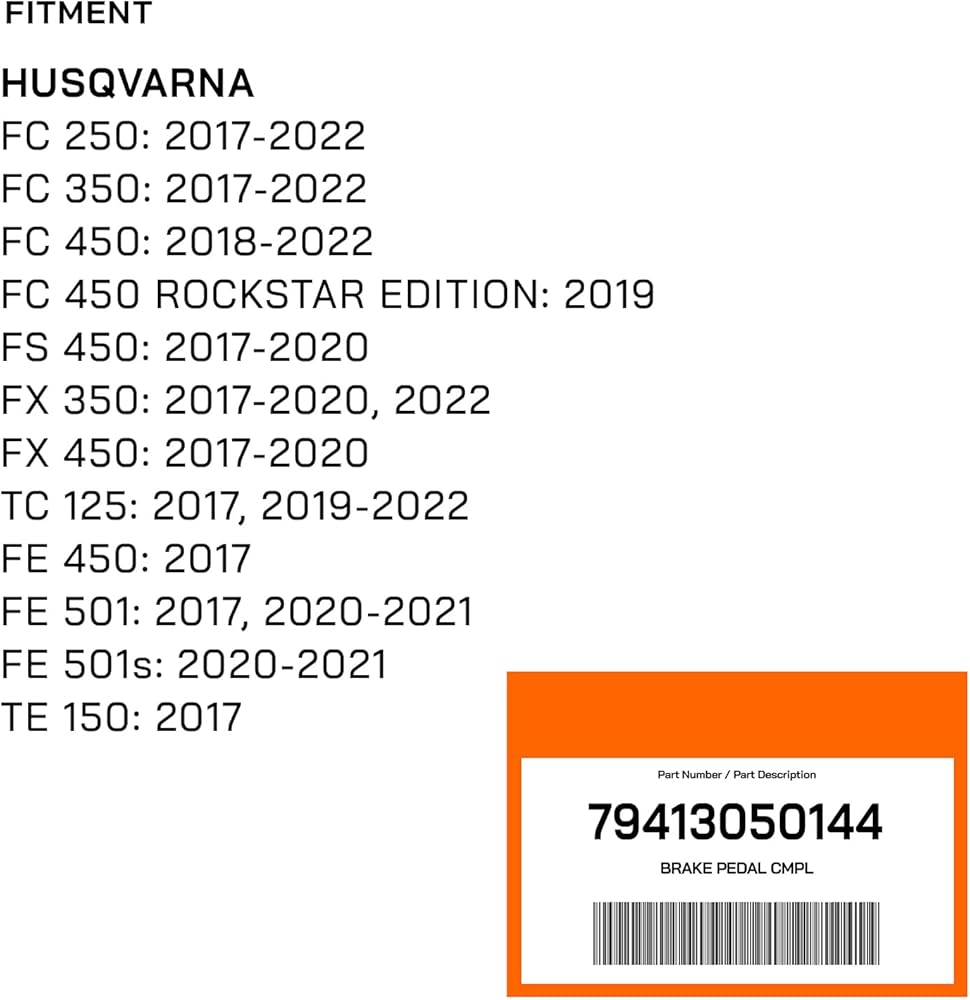 Power Parts CNC Motorcycle Rear Foot Brake Pedal Lever Unfolding 7075 Aluminum Alloy Forged - 79413050144 KTM -Apply to Fitment: KTM SX/SXF/XCF 125 to 450 2017-2022 -Apply to Fitment: KTM EXCF 450/500 2017-2023 HUSQVARNA -Apply to Fitment: Husqvarna FC/FX/TC 125 to 450 2017-2022 -Apply to Fitment: Husqvarna FE 450/501 2017-2021 GASGAS -Apply to Fitment: GasGas FMC 125 - MC 250F/450F - EX 250F/350F/450F - 2021-2023 -Apply to Fitment: GasGas MC 350F 2022-2023