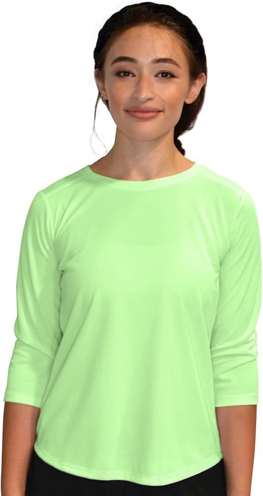 - ¾ sleeves and a closed neckline keep you modest while at the gym, running, exercising, playing sports or an active lifestyle