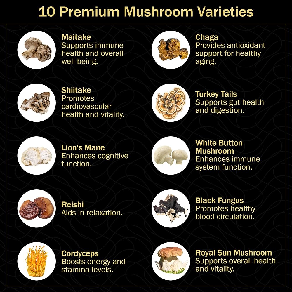 Powerful mushroom blend: Our mushroom gummies are a potent blend of 10 different types of mushrooms, each carefully selected for its unique health benefits. Get the benefits of Maitake, Shiitake, Lion's Mane, Reishi, Cordyceps, Chaga, Turkey Tails and more in one delicious gummy.