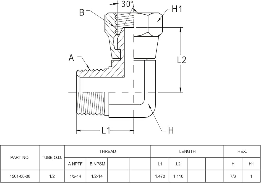 - (2-PACK) 1501-08-08 Hydraulic Hose Adapter Fitting 1/2" Male (1/2-14 NPTF) × 1/2" Female (1/2-14 NPSM) Swivel 90° Elbow SAE Pipe Joints Connector Carbon Steel