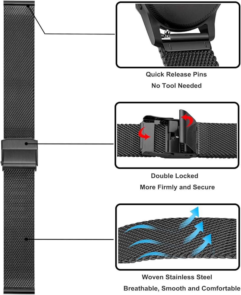 EASY RESIZING & QUICK RELEASE: Fit wrists 5.3''to 8.1''(135mm to 205mm), and easy to resize by using our included watch needle and instruction. Quick release style makes it effortless to install and detach your watch, no tool needed, just by hand directly.