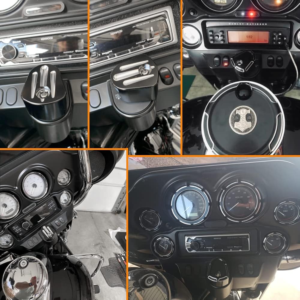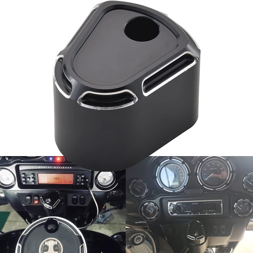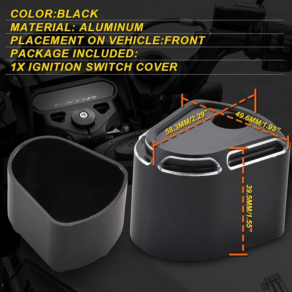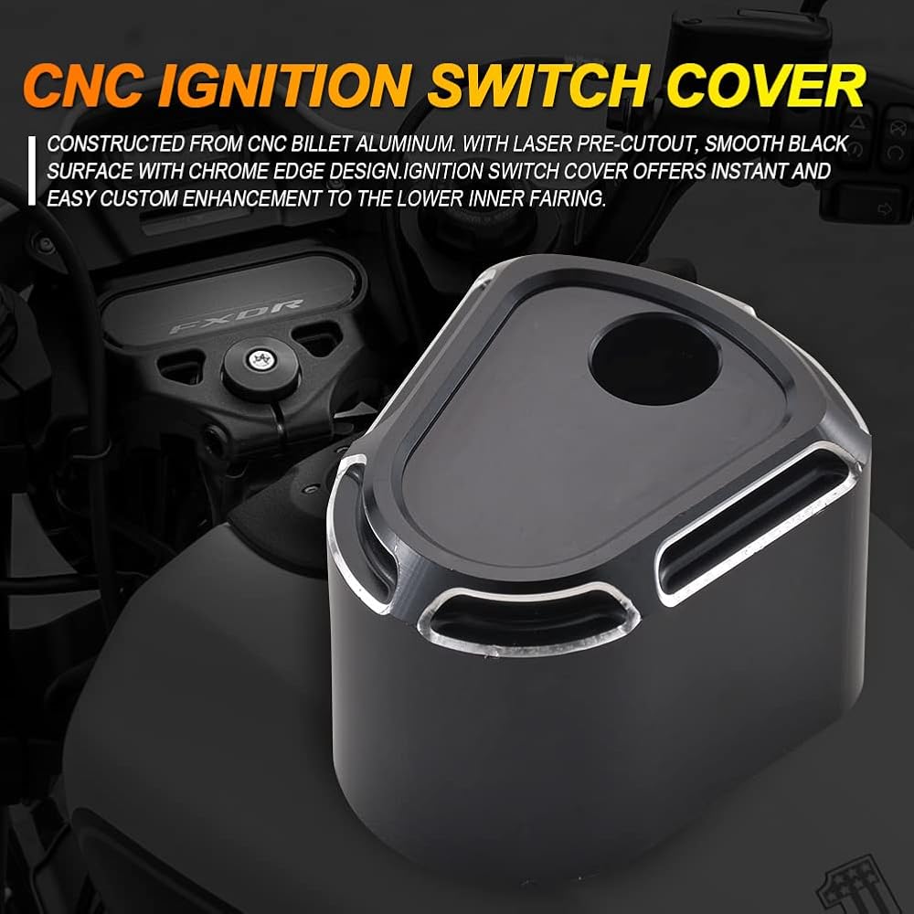 ★【CNC Ignition Switch Cover】Deep Cut styling with a black anodized finish which can perfect to decorate your motorcycle. Retains all factory locking functions.Constructed CNC machined from Billet Aluminum Ignition Switch Cover.
