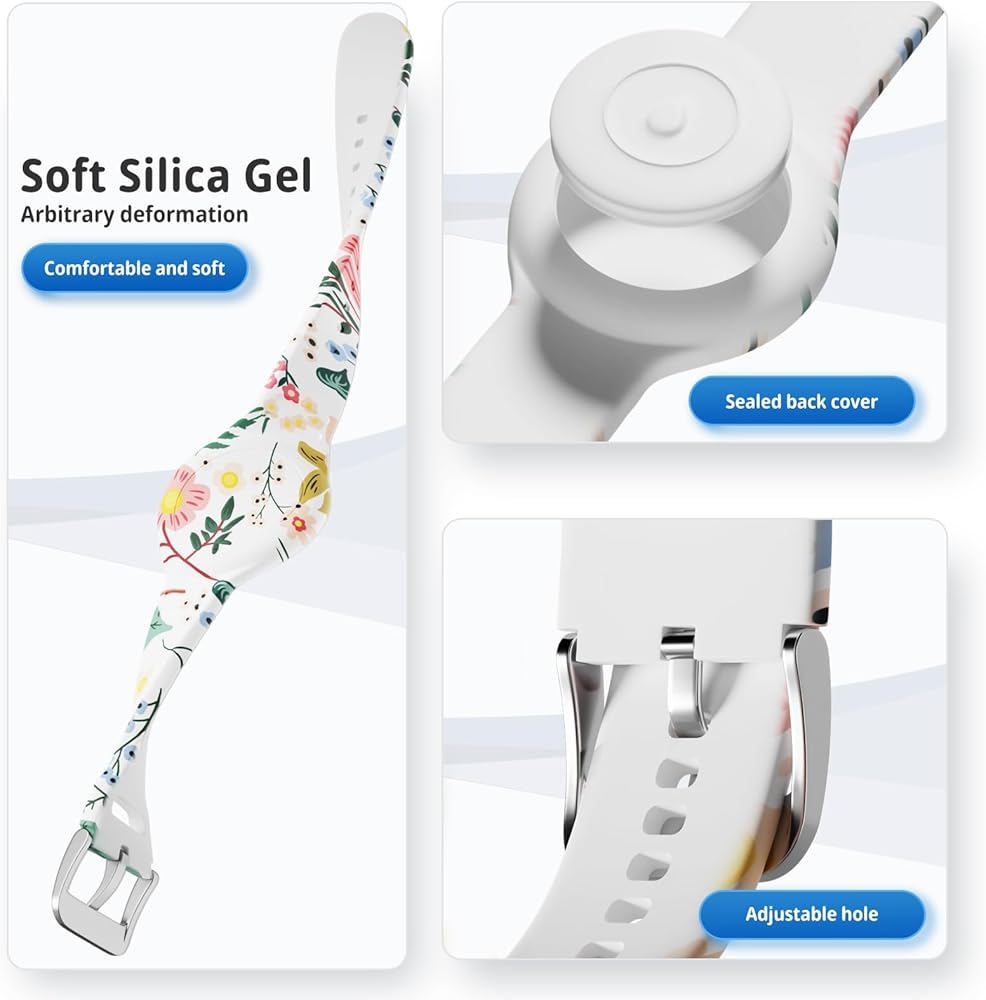 AirTag Bracelet for Kids, Waterproof Cute Print Air tag Holder for Kids with Soft Silicone Full Coverage Anti-Lost Hidden Airtag Wristband Accessories for Child, Flower