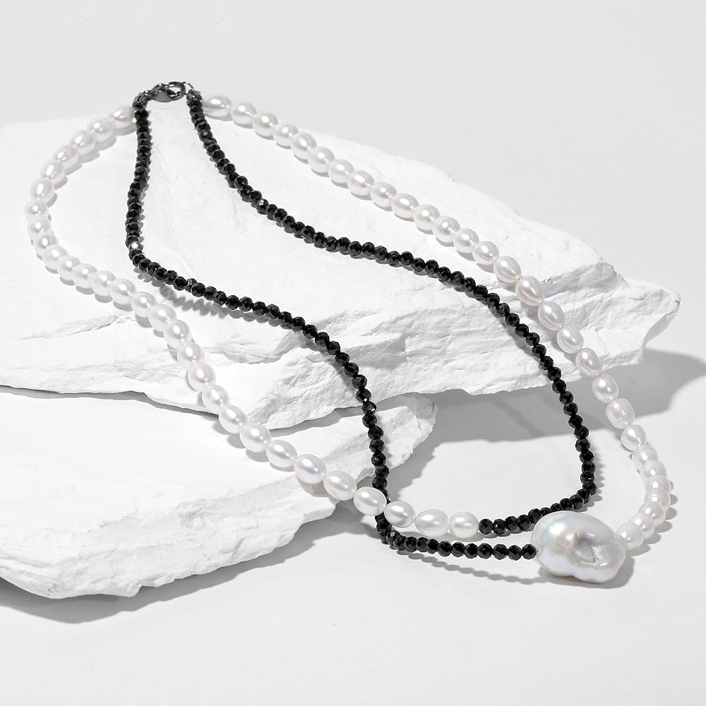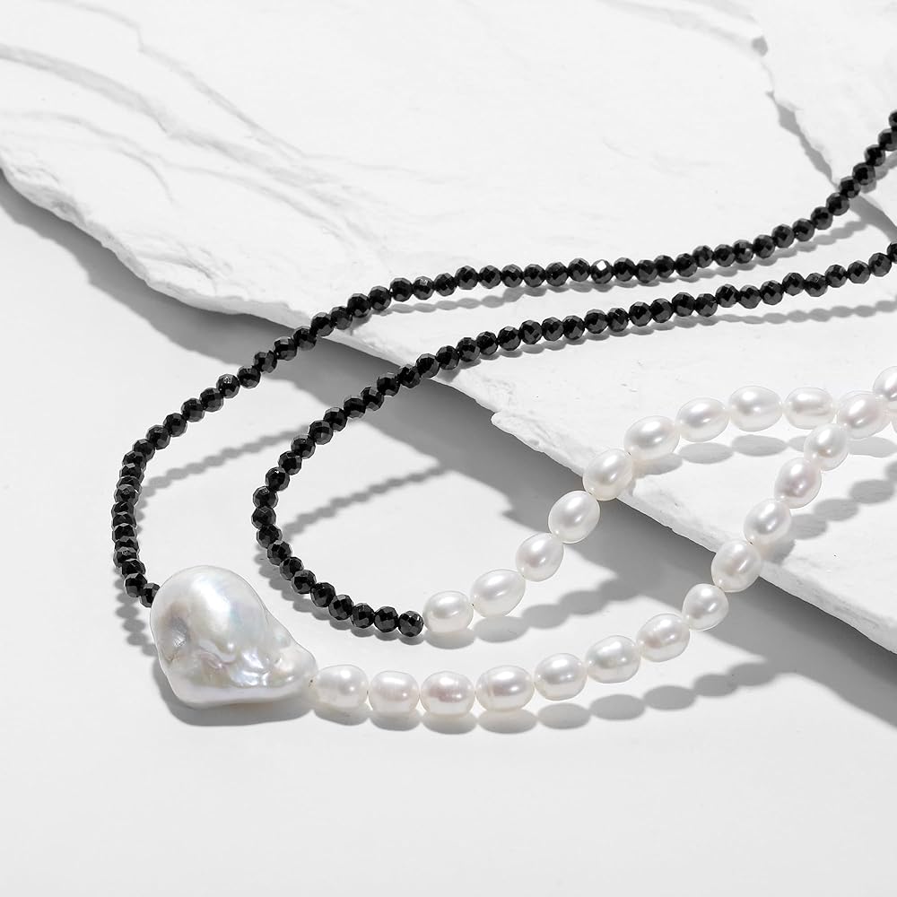 IDOKAWA Layer Chain Freshwater Pearls Necklace for Women, Adjustable Extension Chain Necklace Fashion Vintage Jewelry Gifts For Wife Women Her for Birthday