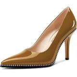 The patent leather construction not only enhances the overall aesthetic but also ensures durability, making these pumps a timeless addition to your wardrobe.