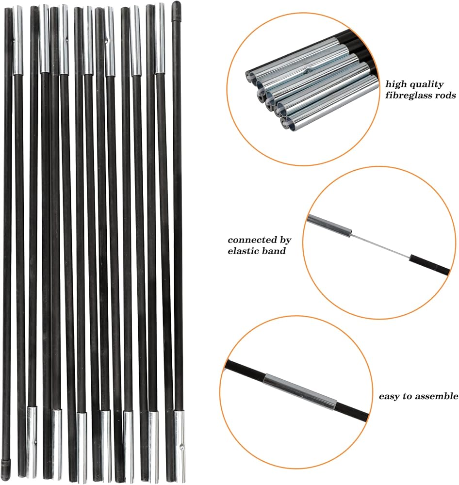 High Quality Material: The foldable rods are made of robust and durable fibreglass, which are not easy to break. The support pipes connected with bases are made of metal, they are solid and will ensure the arch be more stable.
