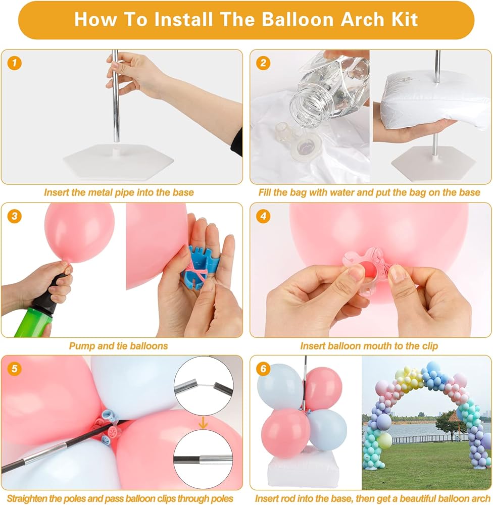 Easy to Assemble: The balloon stand kit is easy to assemble. A detailed installation manual is included and you will have no problem to assemble. With inflated balloons prepared, you could set the arch within 10 minutes. With this set, you would not worry about party decorations.