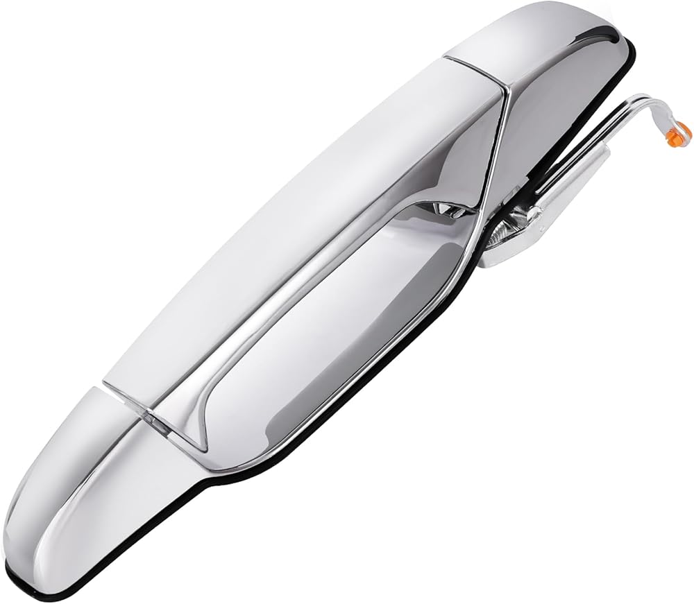 This exterior chrome door handle is located on the Front Left Driver Side.