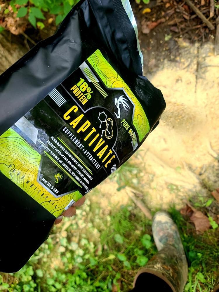 5 LB BAG CAPTIVATE DEER FEED – Pure Whitetail Captivate supplemental deer feed is packed with protein, vitamins, and trace minerals for deer that promote antler growth and healthy body development. Offer them deer food they want!