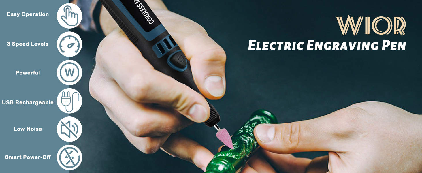 WIOR USB Rechargeable Engraving Pen with 41 Bits and 19 Stencils, Mini Electric Engraver Cordless Rotary Tool Accessories Kit for DIY Polishing Carving Jewelry Metal Plastic Wood Stone Glass Etching