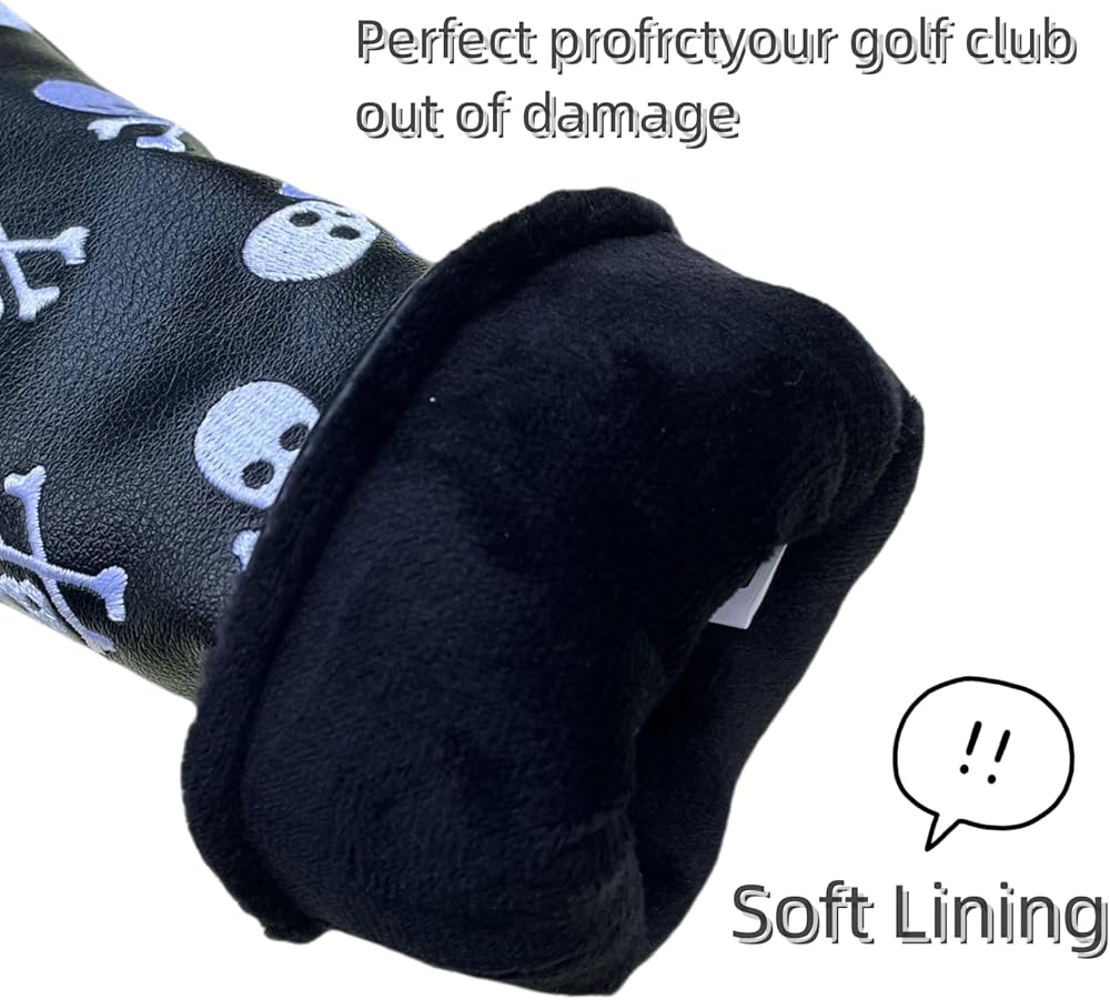 【Premium Leather Material】: Crafted from high-quality leather, ensure longevity for our golf club head covers(for example:driver headcover, 3 wood headcover, hybrid headcover, putter covers). The funny skull design adds a touch of fun to your golf gear.