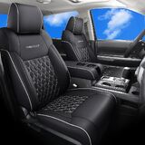 ►【Stylish Design】Toyota tundra waterproof leather seats covers are perforated in the center, more breathable and stylish. Simple and unique 3D diamond design adds a stylish touch to your truck seats. With an all-inclusive design, these seat cushion completely wraps the car seat without revealing the sides, protects the seat more comprehensively.