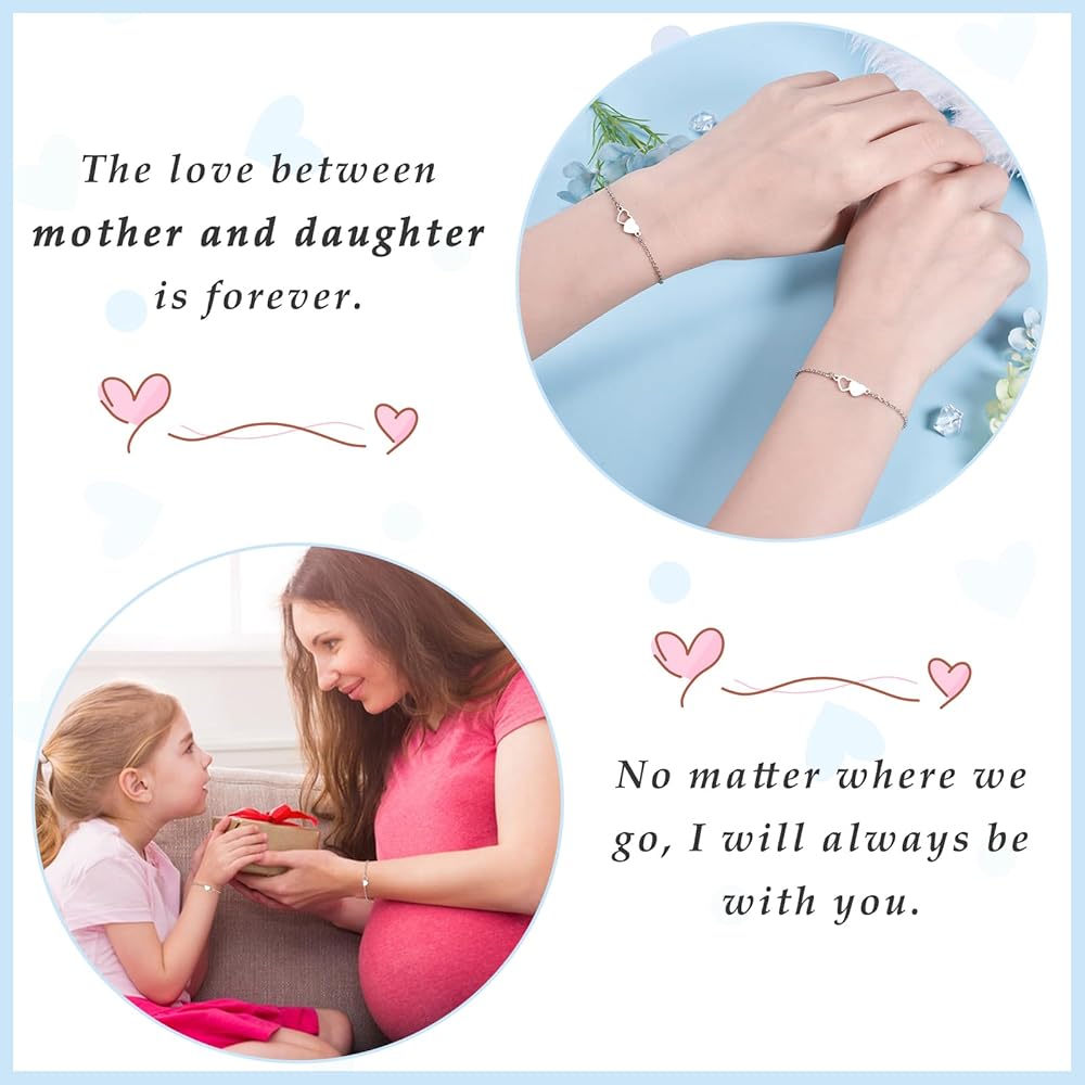 💗 Mothers Day Gifts for Mom 💗 The love between mother and daughter is forever. No matter where we go, no matter what we do, you will always have me,and I will always have you.Even if I'm not by your side, When she wears this heart matching bracelet and she will know she's always connected to you. Good gifts choice for mother, daughter.