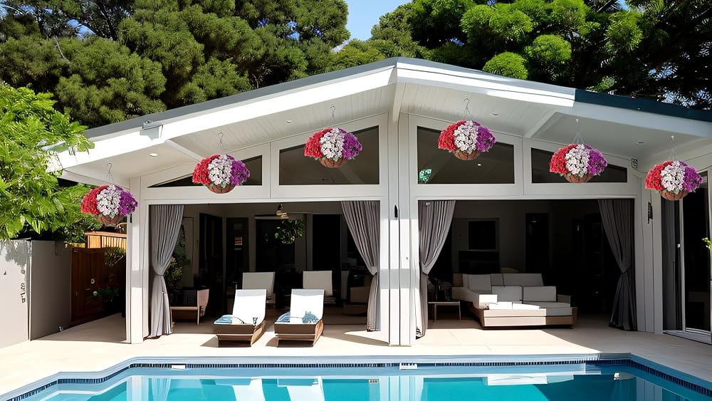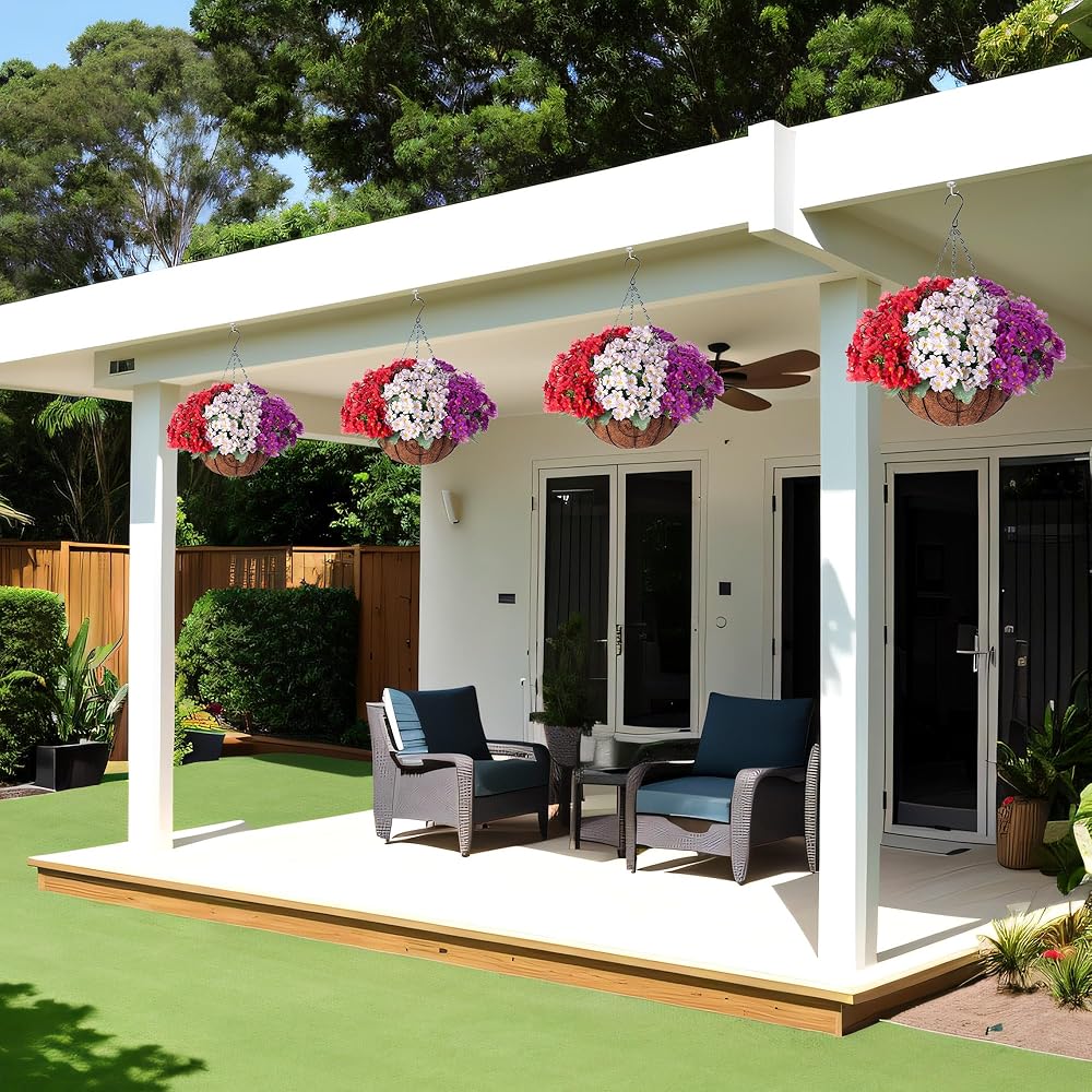 Lifelike Artificial Greenery: This artificial flowers in hanging basket boasts a realistic appearance, making it an ideal choice for enhancing your home, garden, yard, patio, balcony - both indoors and outdoors
