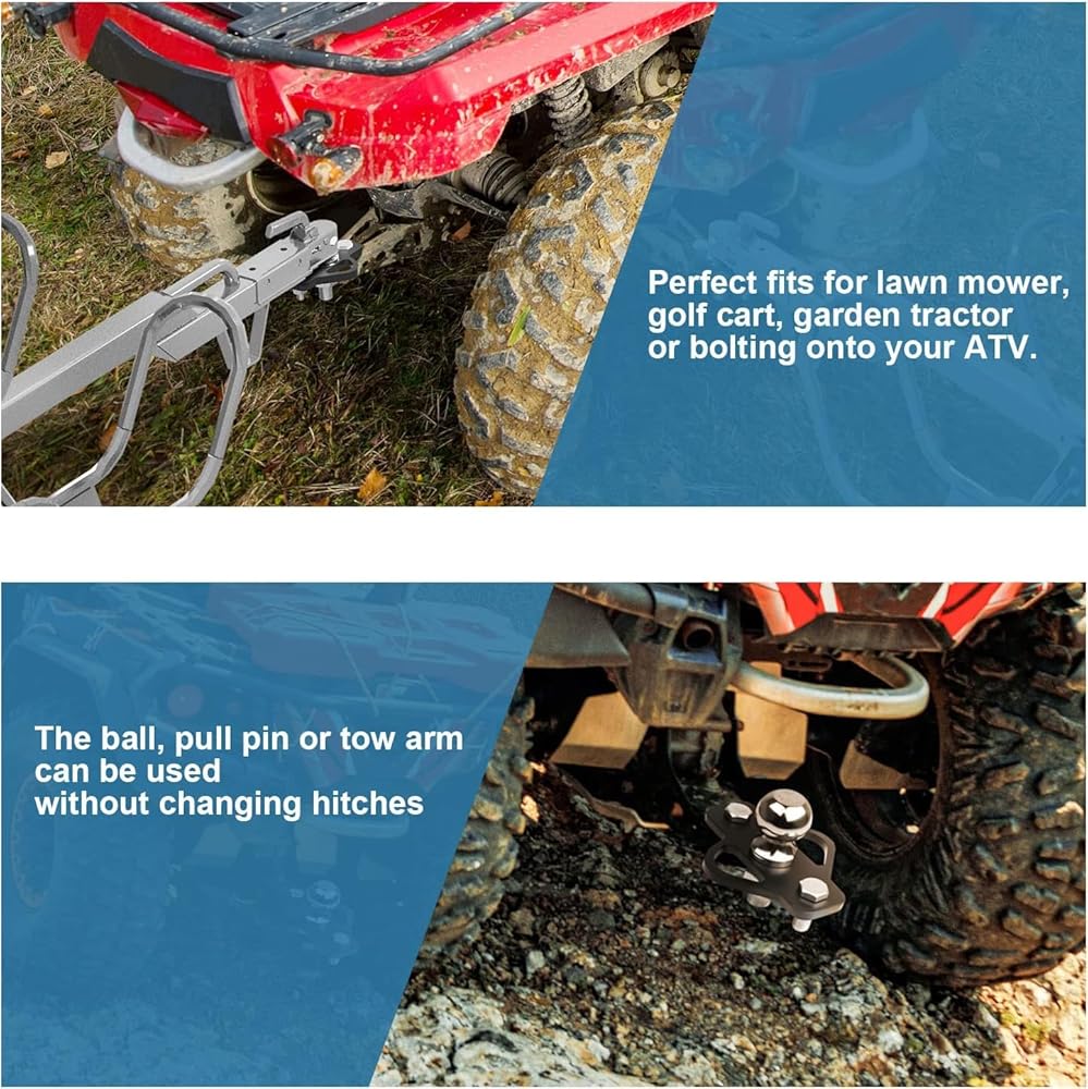 Widely Application: High strength steel 3-Way hitch perfect for lawn mower, golf cart, garden tractor or bolting onto your ATV.